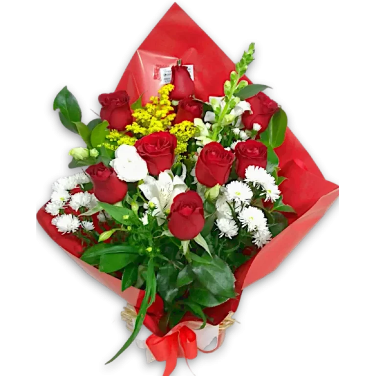 Buquê de Rosas, Vinho Tinto, Mix de castanhas, Mix de amendoins, Talento, Balão...